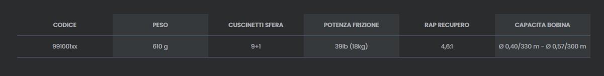 Mulinello da long casting dedicato alle tecniche che necessitano di una bobina a grande capacità per utilizzare fili di grosso diametro. La meccanica, dotata di sistema slow oscillation per un perfetto imbobinamento del filo, è sostenuta da un corpo e rotore in grafite dimensionato appositamente per le più forti sollecitazioni. Molto accattivante ed elegante la veste con i colori Tubertini nero mat e particolari in giallo. Disponibile in taglia unica 10000.